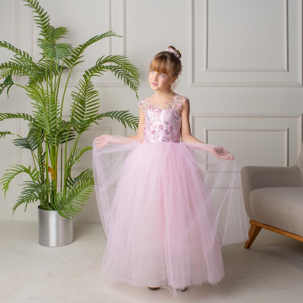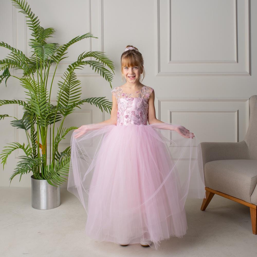 Make every moment magical with this Blush Pink 3D Flower Girl Dress—a dreamy tulle and lace princess gown designed for unforgettable celebrations. Perfect for weddings, birthdays, and special occasions, this gown features layers of soft blush tulle and intricate lace, adorned with hand-sewn 3D floral appliqués that bring fairy-tale charm to life.