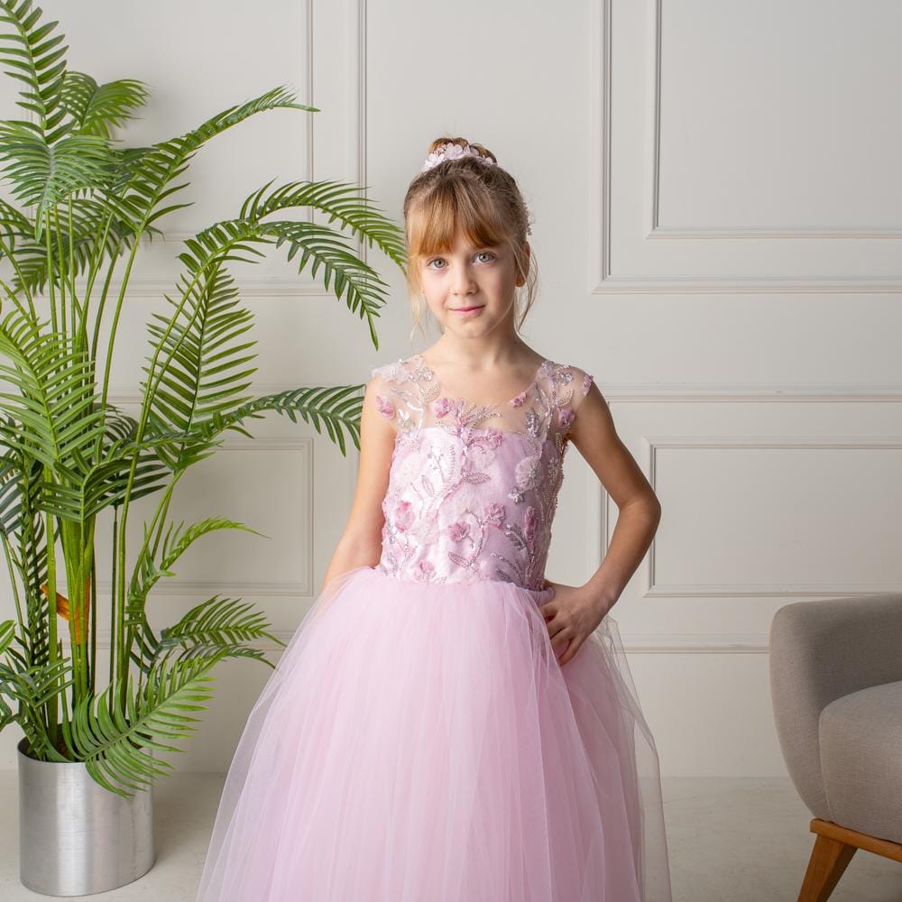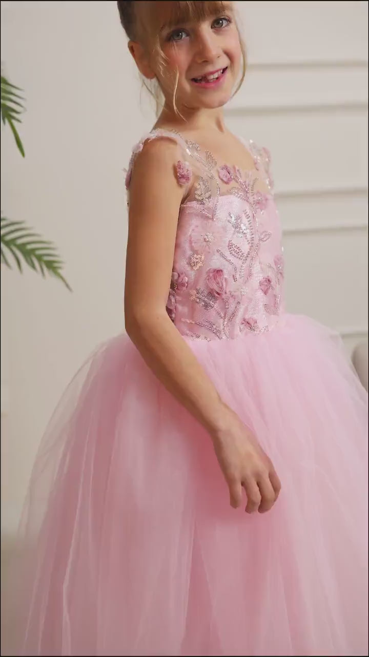 Let her step into a fairy tale with this blush pink 3D flower girl dress—a keepsake gown made for magical memories and picture-perfect moments!