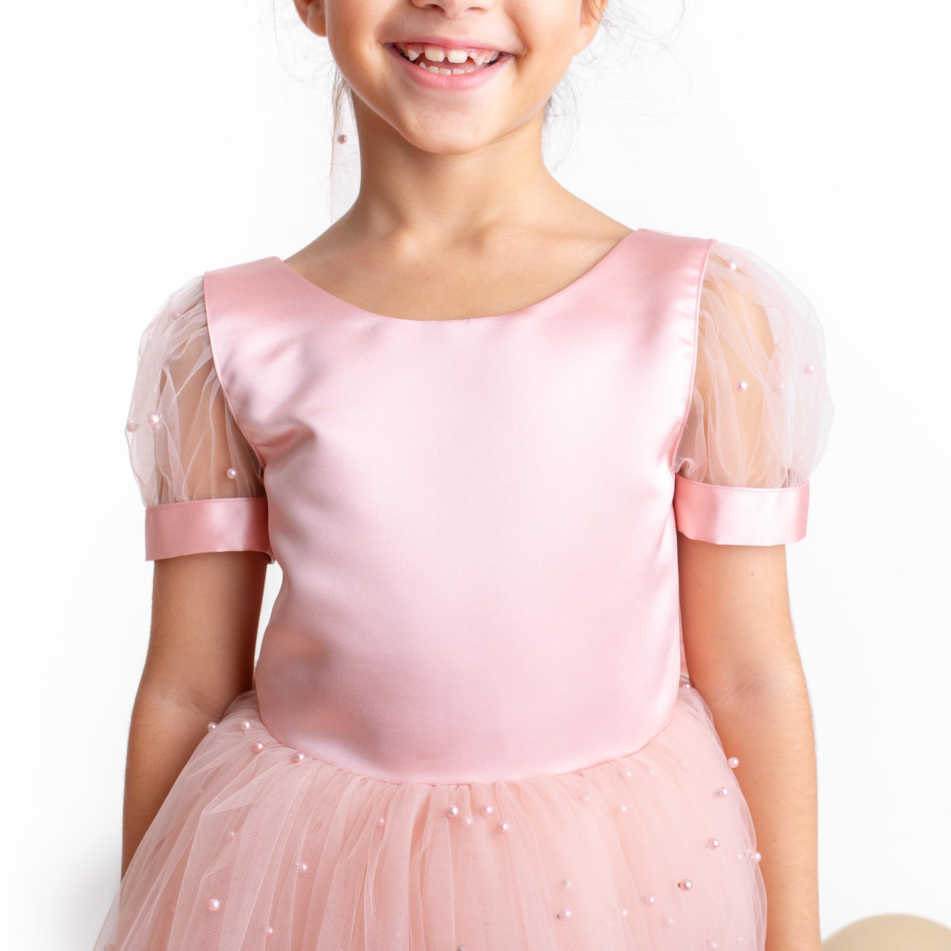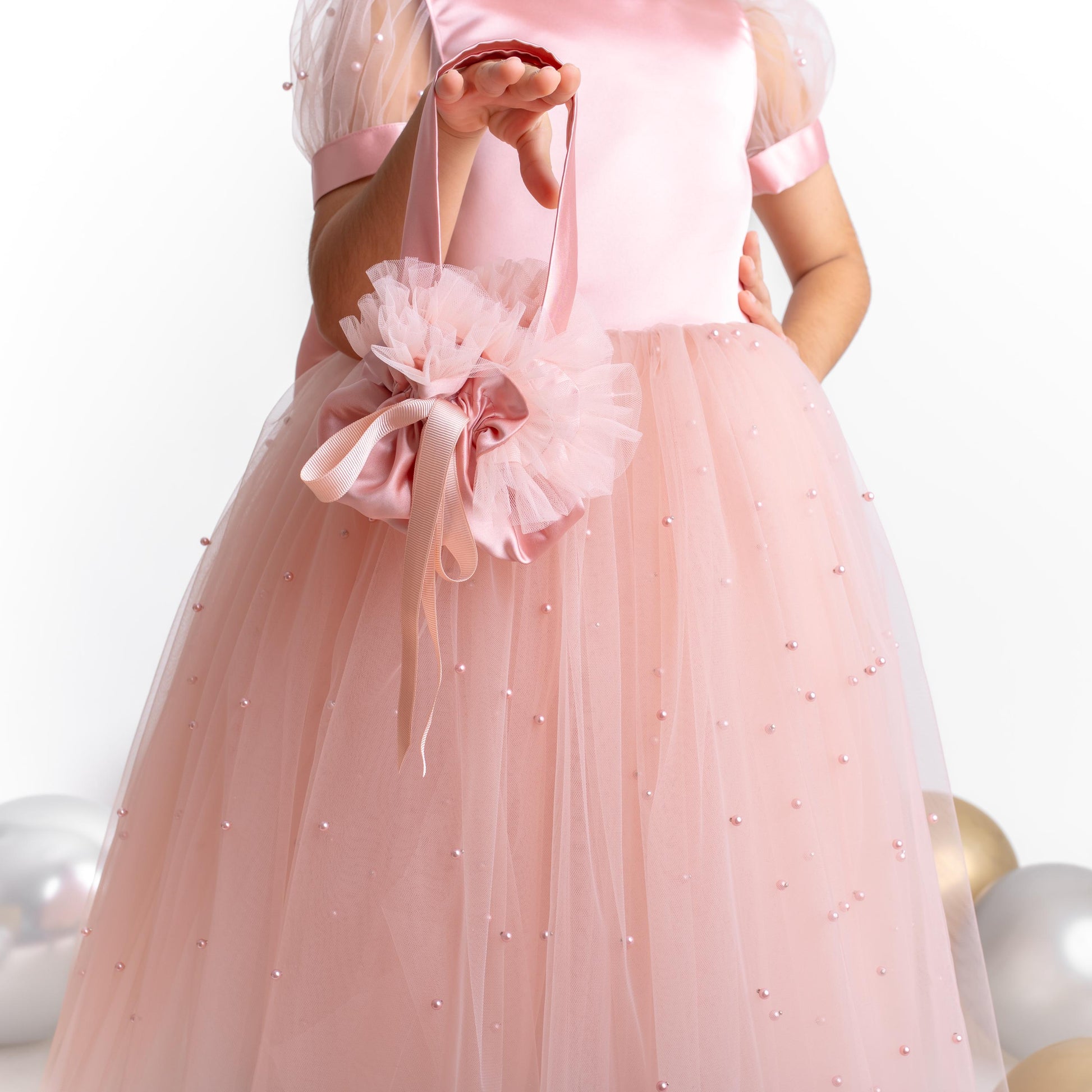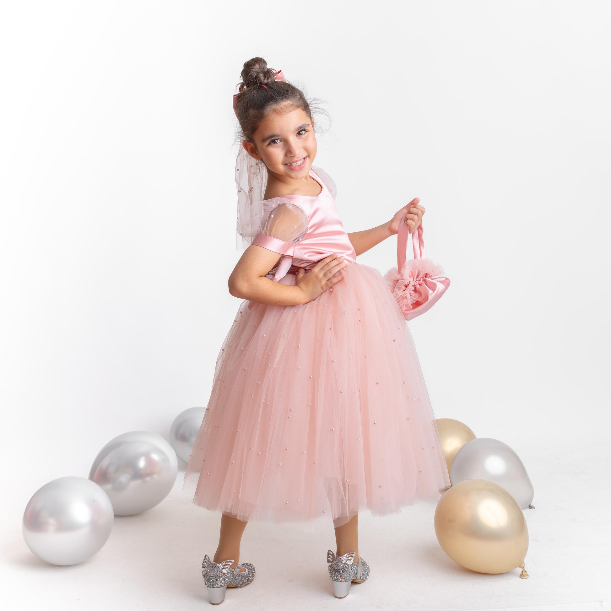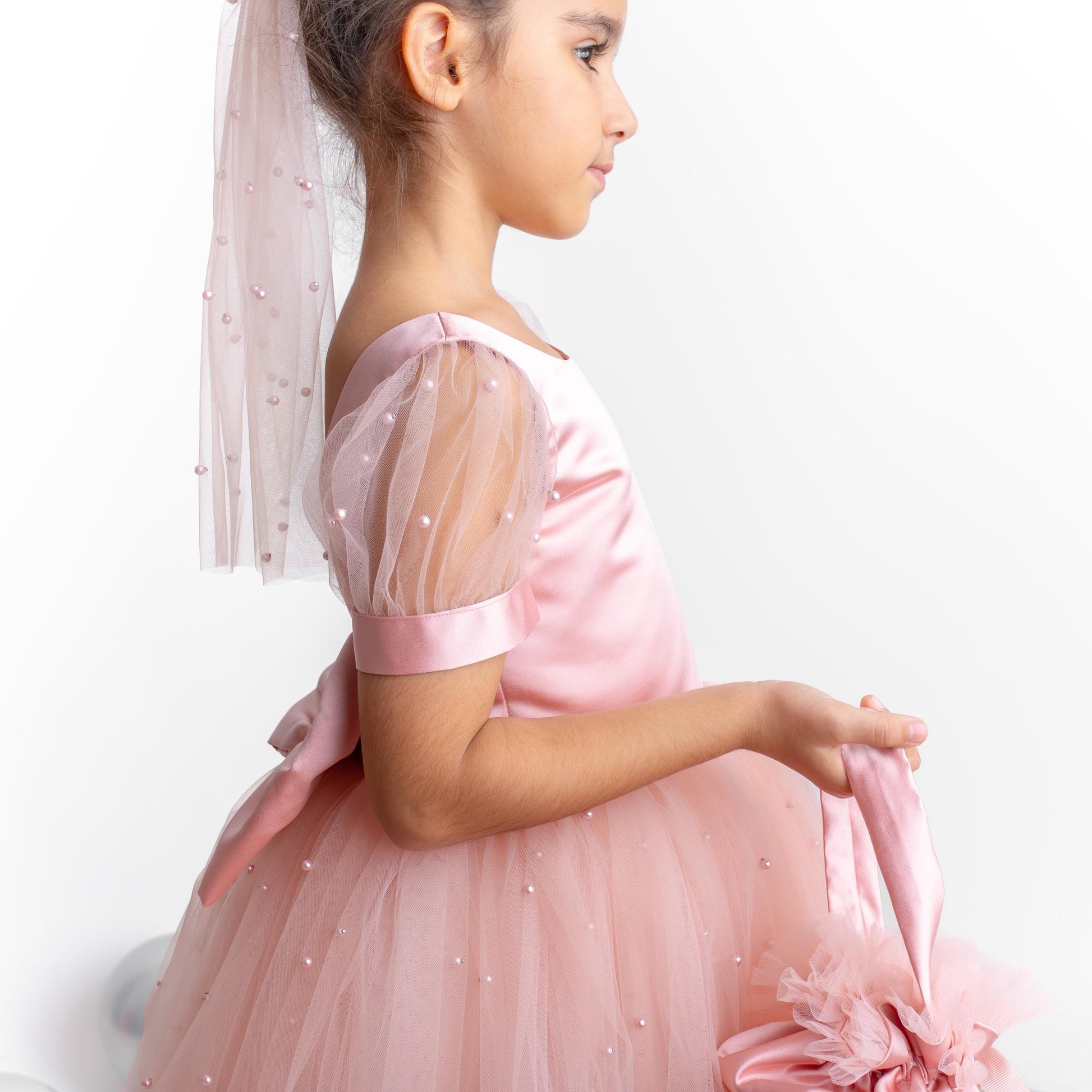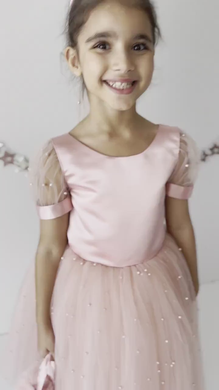 Capture precious memories with this blush pearl tulle dress—a keepsake she’ll remember long after the celebration ends!
