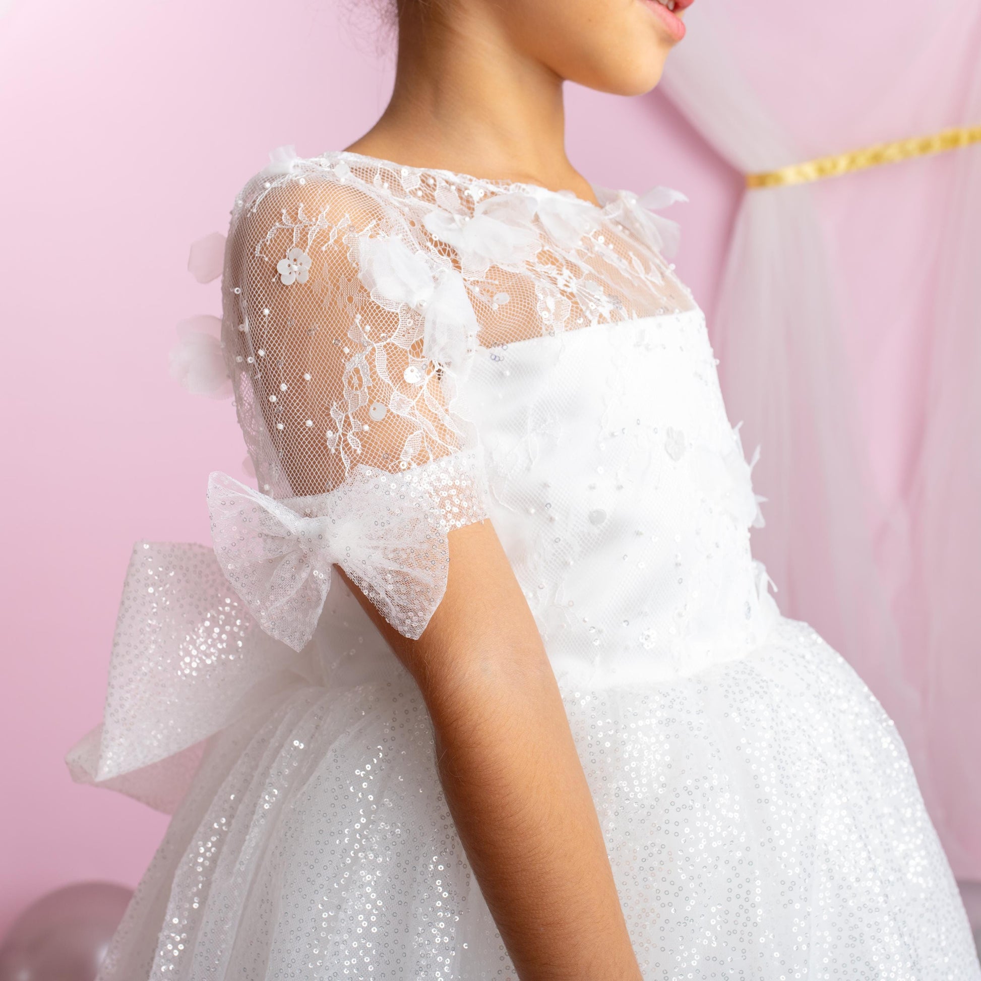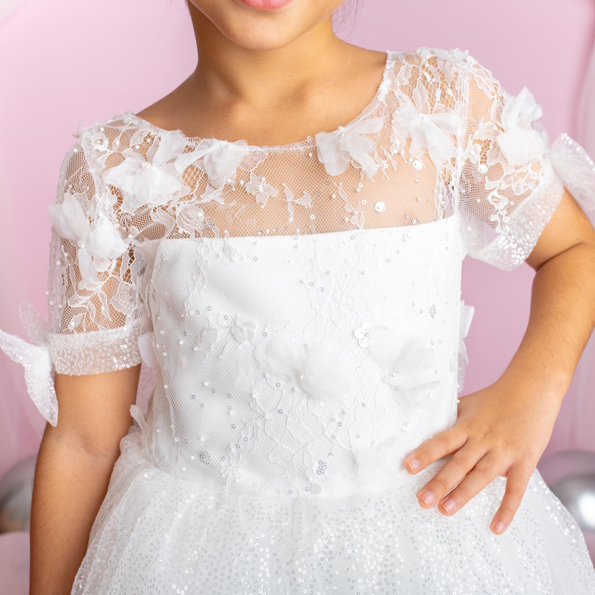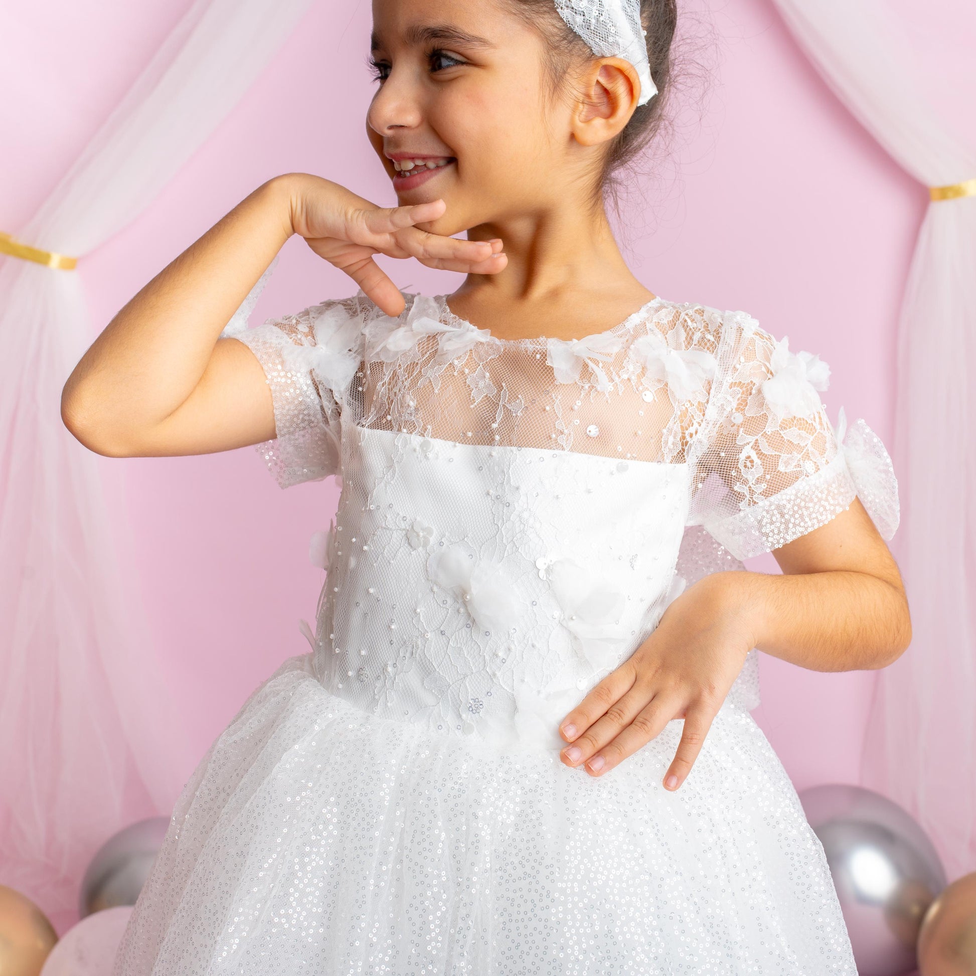 Make her special day unforgettable with this enchanting 3D Flower Lace Girl Dress. Designed for rustic weddings, first communions, and milestone celebrations, this gown blends delicate lace, dimensional floral appliqués, and airy tulle for a look that’s both timeless and unique.