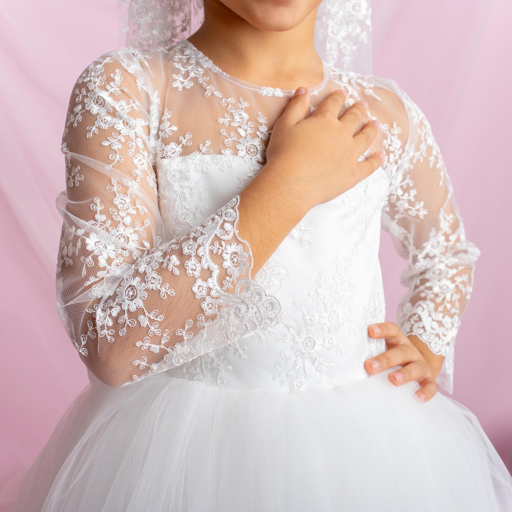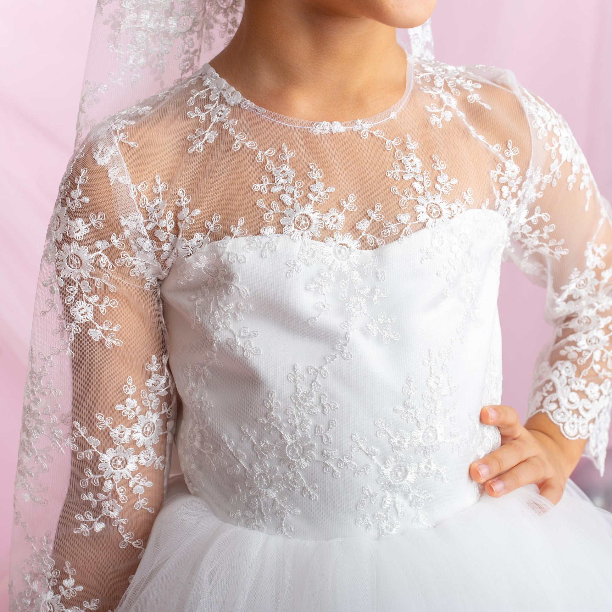 Lace Flower Girl Dress with Detachable Train – First Communion Ball Gown