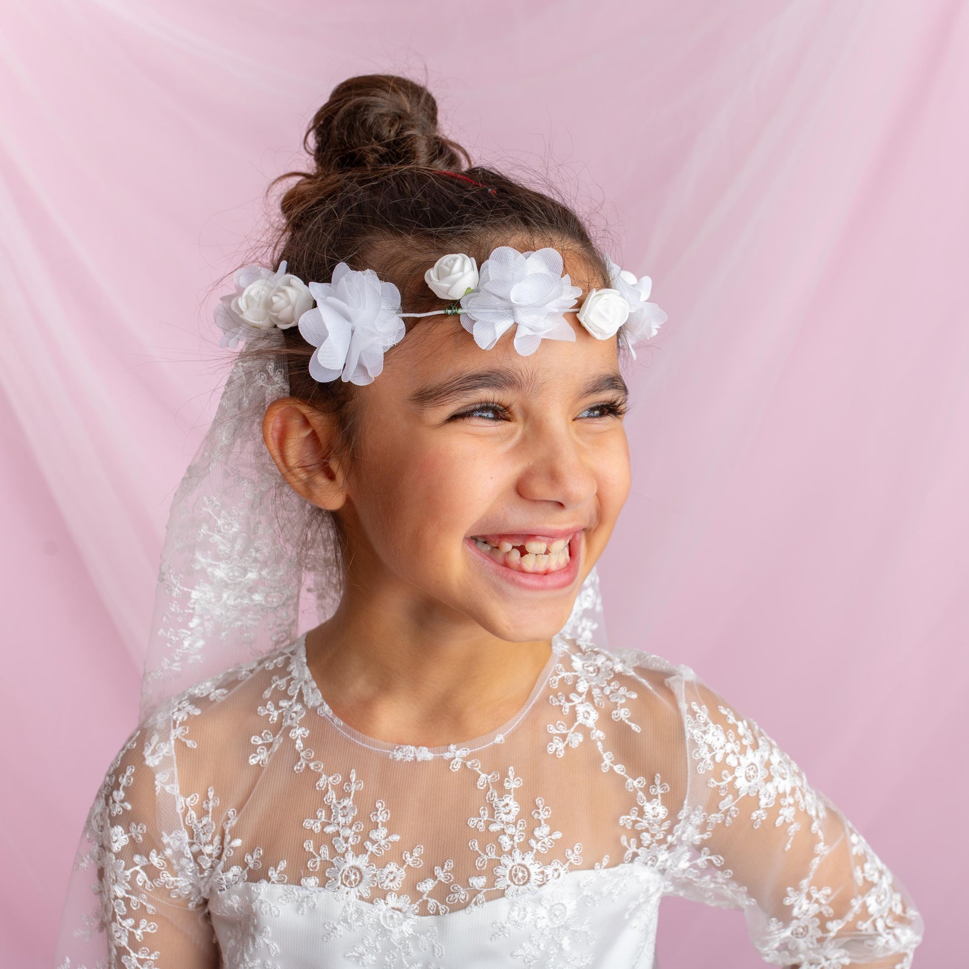 Lace Flower Girl Dress with Detachable Train: First Communion Gown