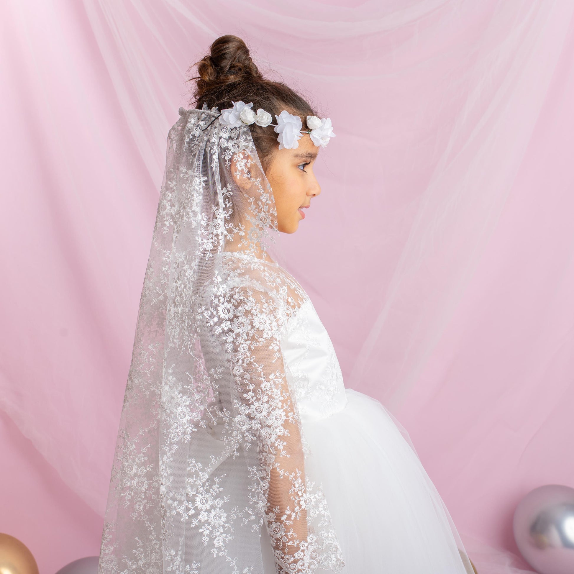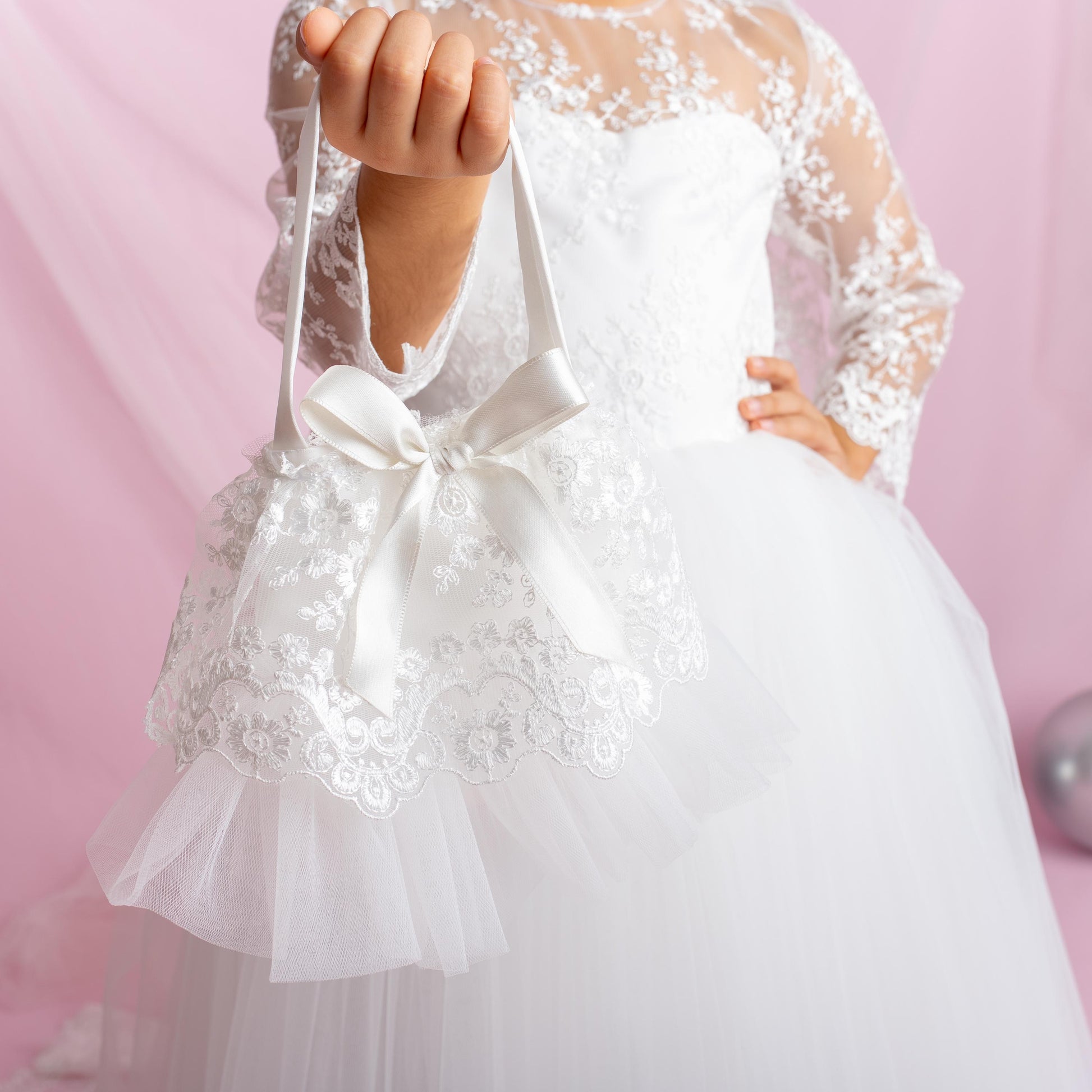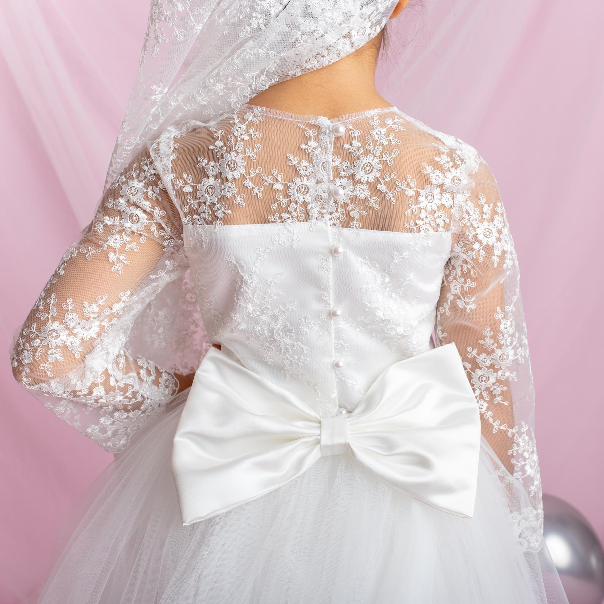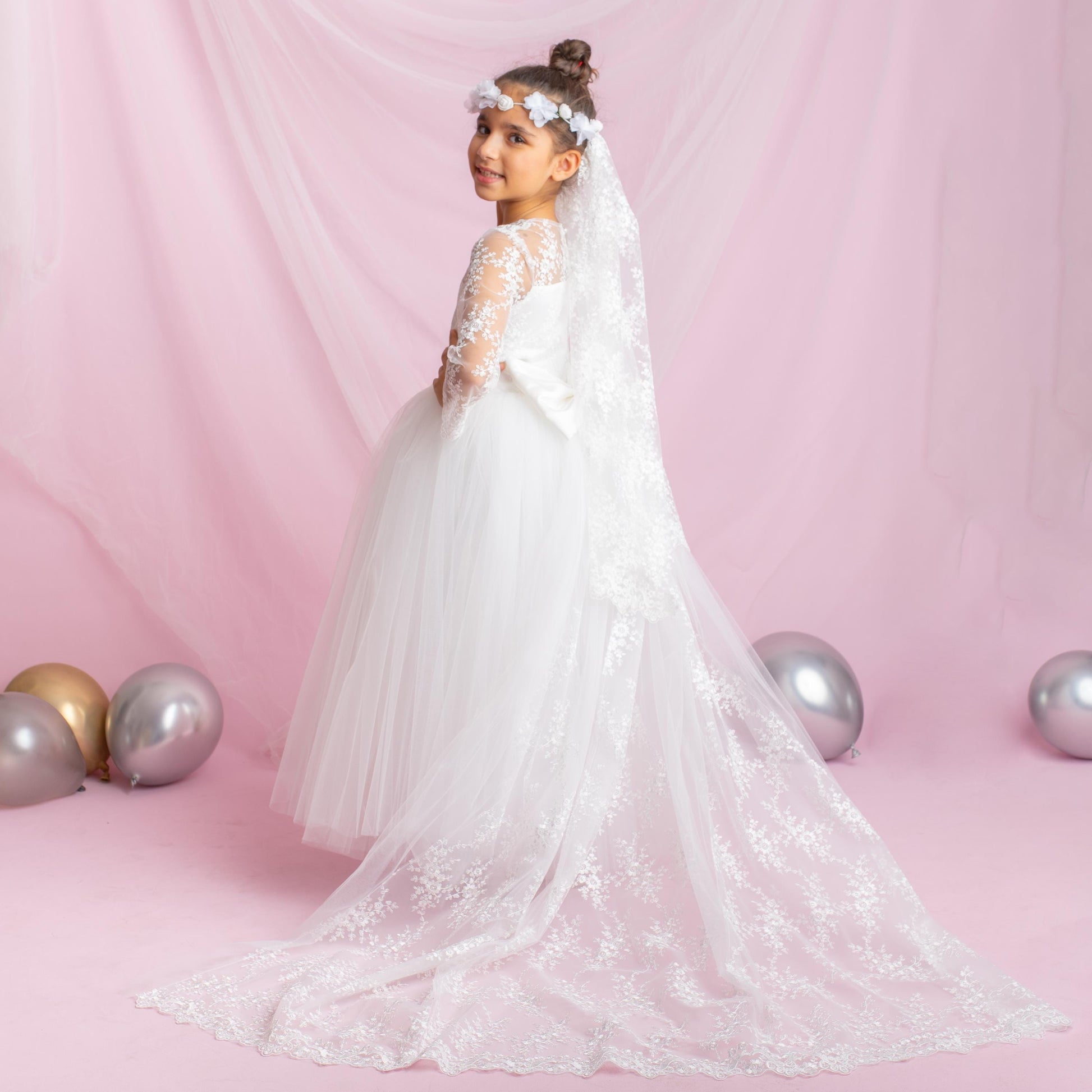 Make her big day unforgettable with our Lace Flower Girl Dress featuring a dramatic detachable train. This exquisite ball gown is designed for little ones who dream of elegance—perfect for first communions, weddings, and milestone celebrations.