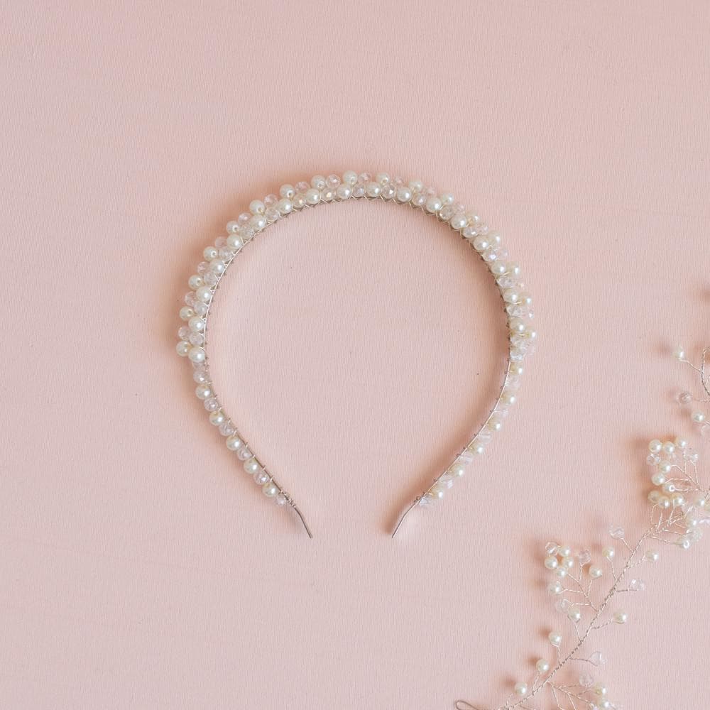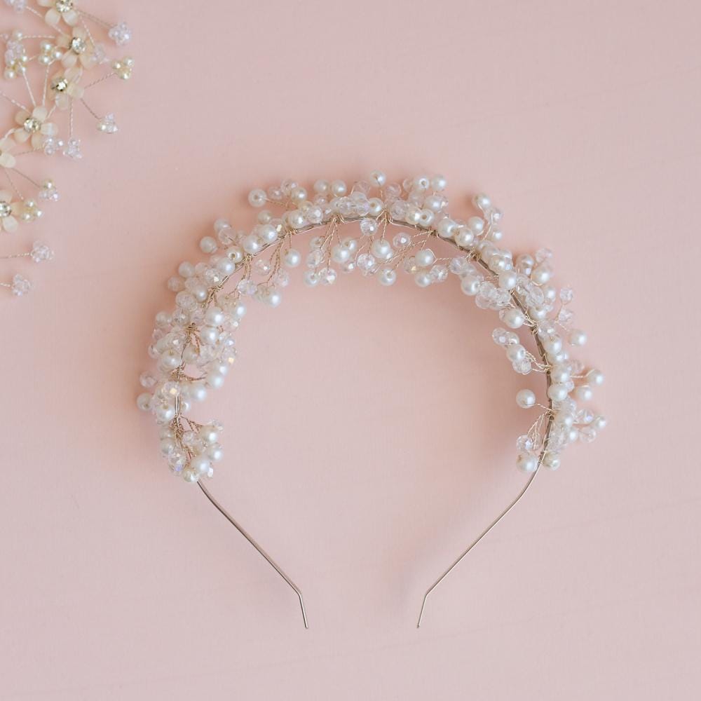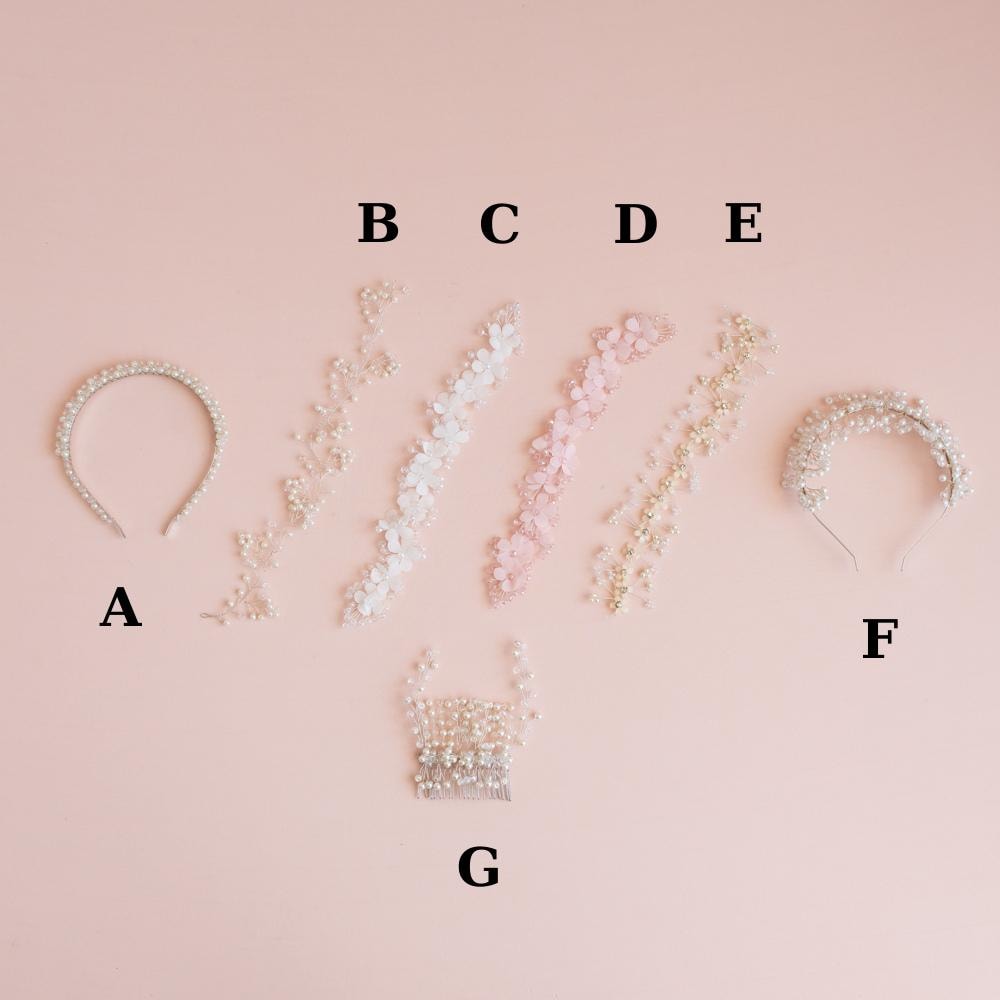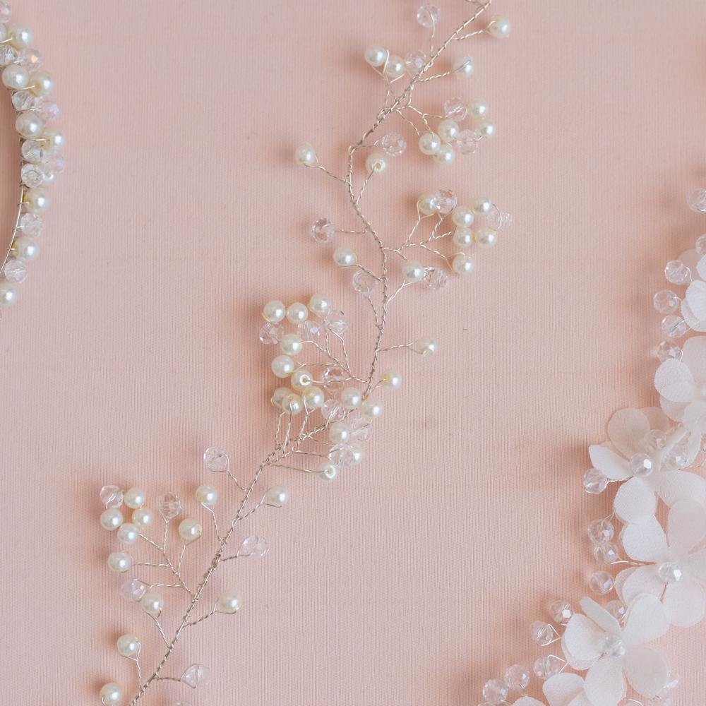 Handmade Pearl Wedding Hair Accessories: Headband, Vine, Comb & Bow