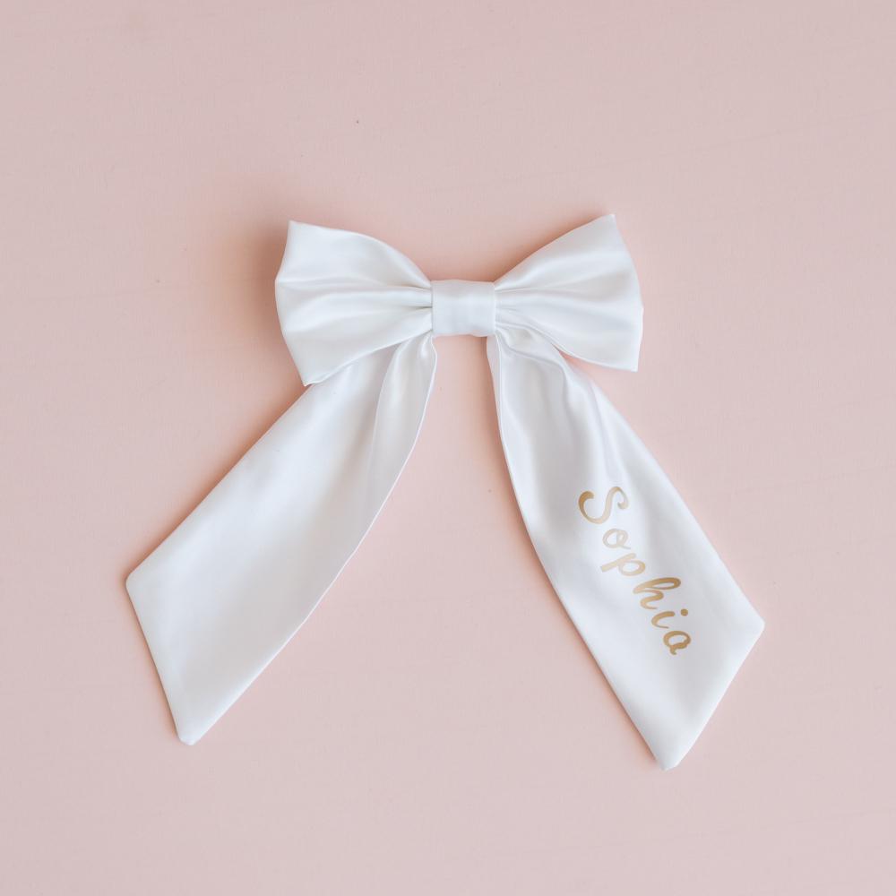 💎 Personalized Satin Bow: Custom-made with your chosen name or text in elegant script.