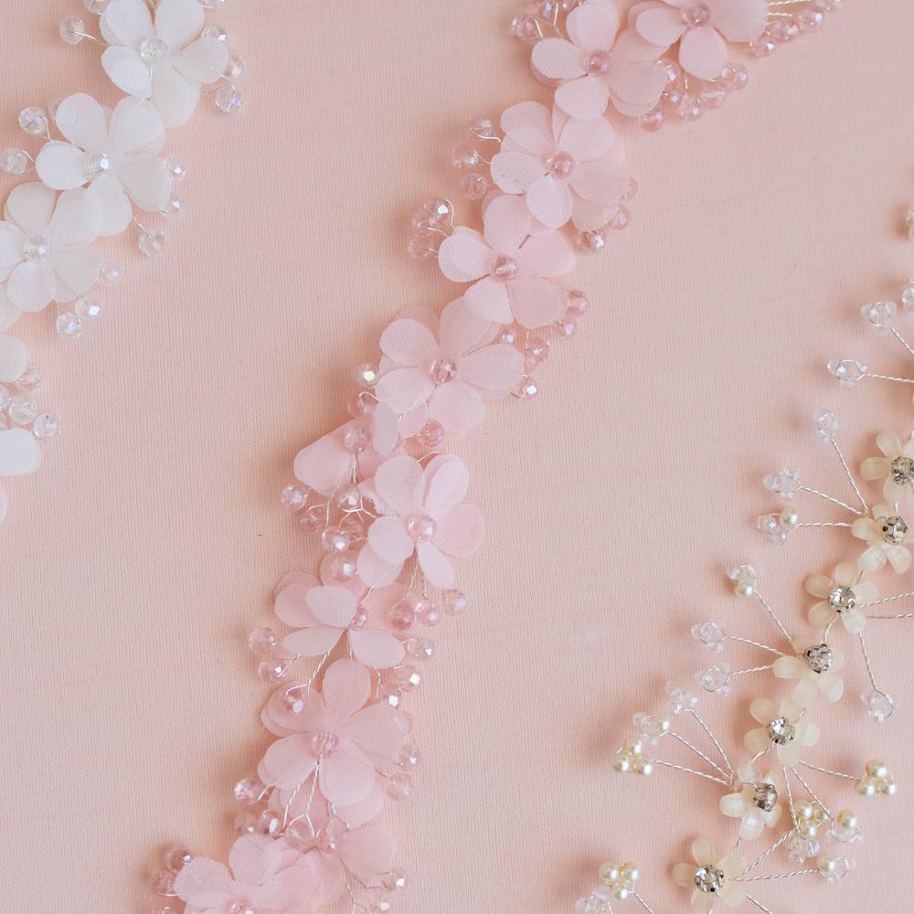 💎 D – Pink Floral Hair Vine: A soft, romantic option with pink floral accents.