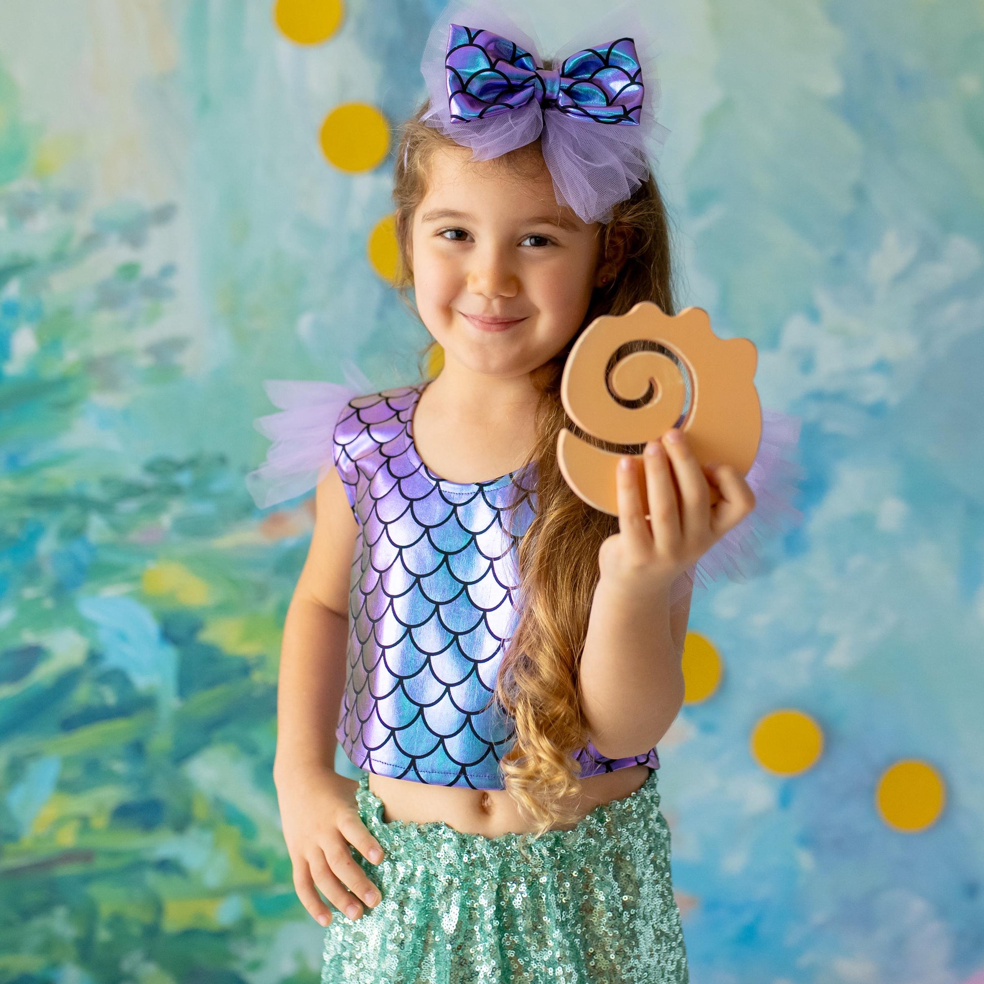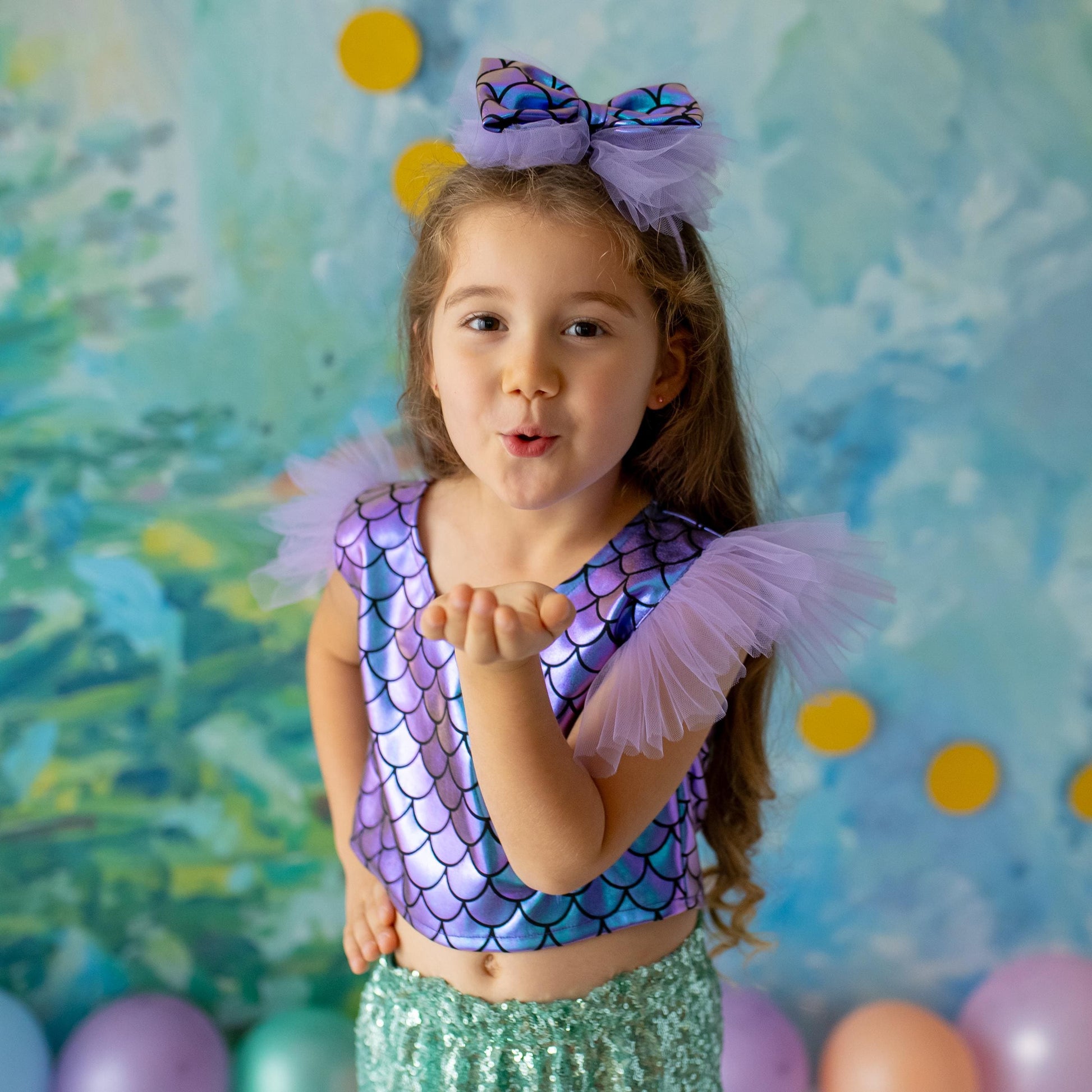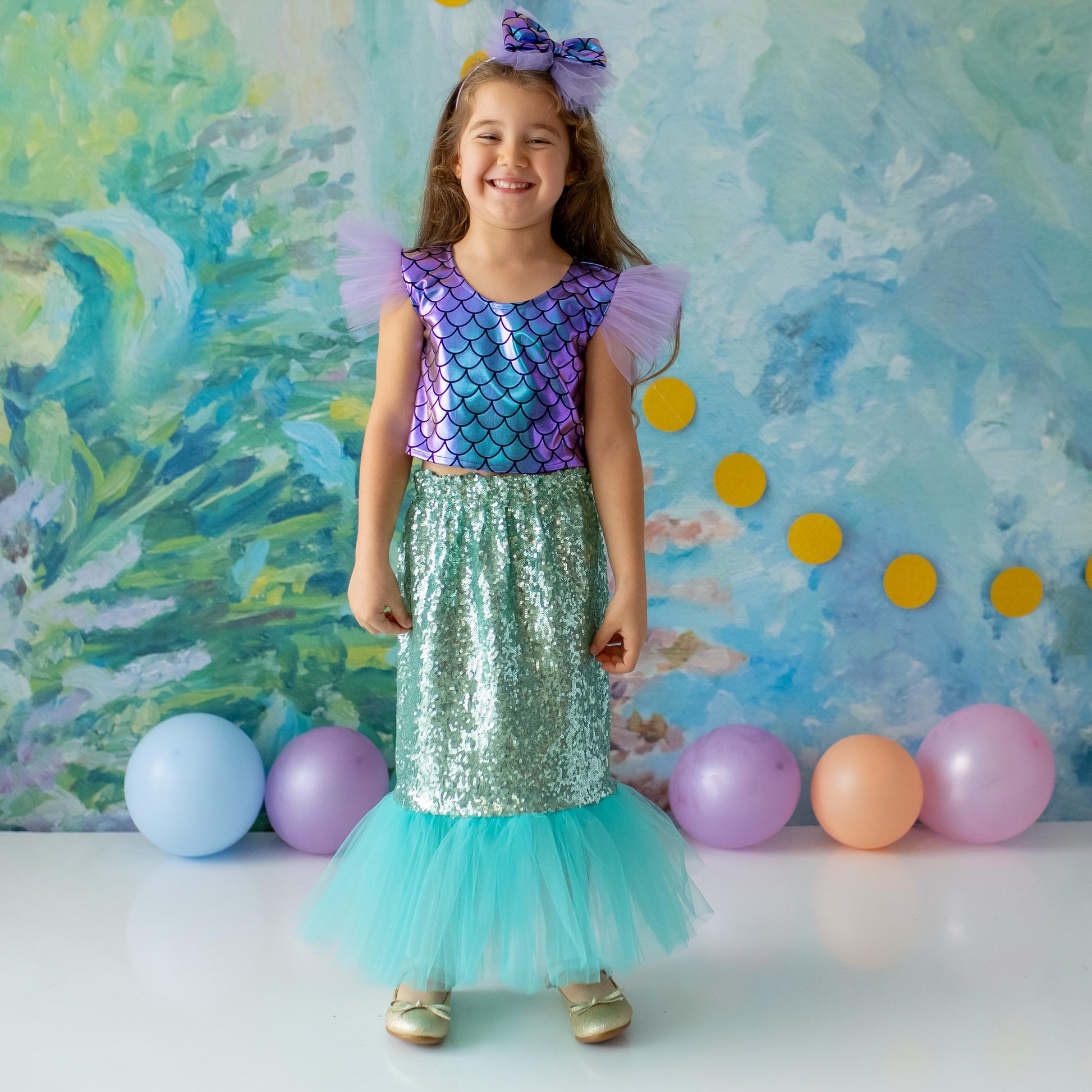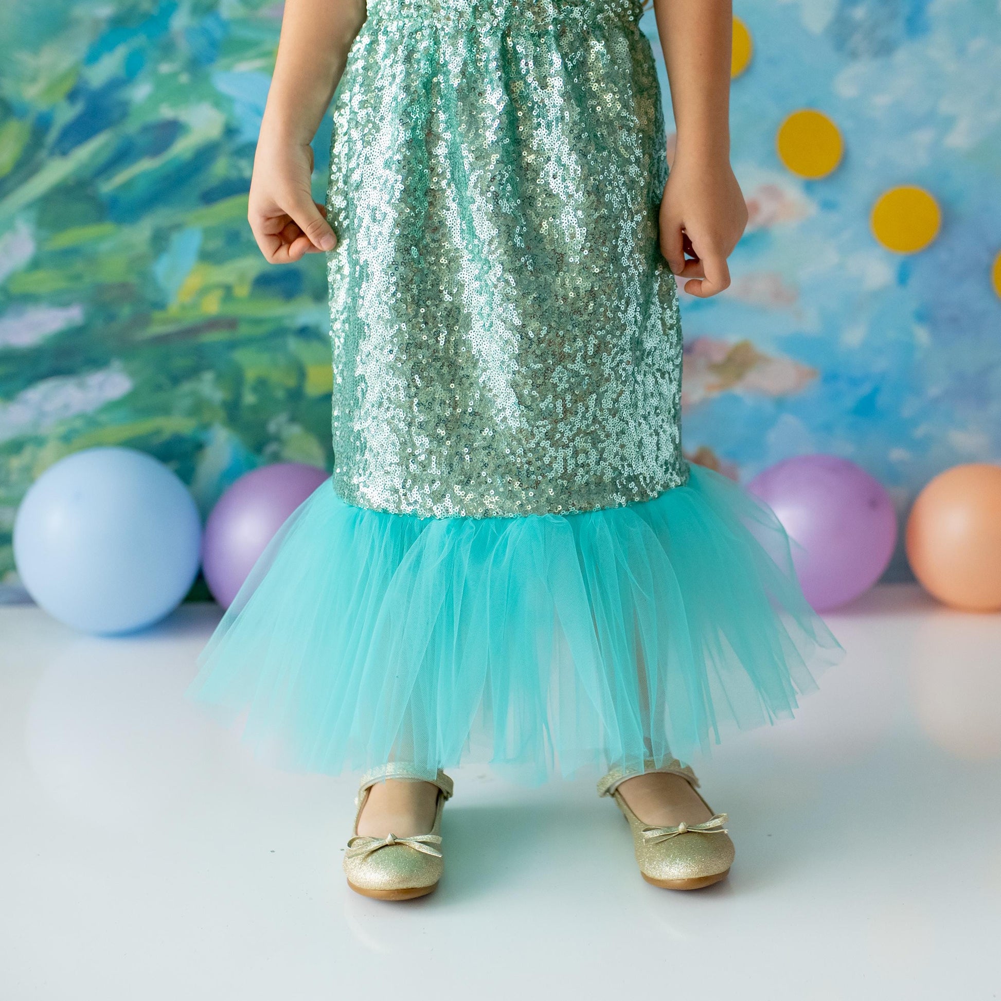 - Shimmery scales and layered tulle skirt for a true mermaid look