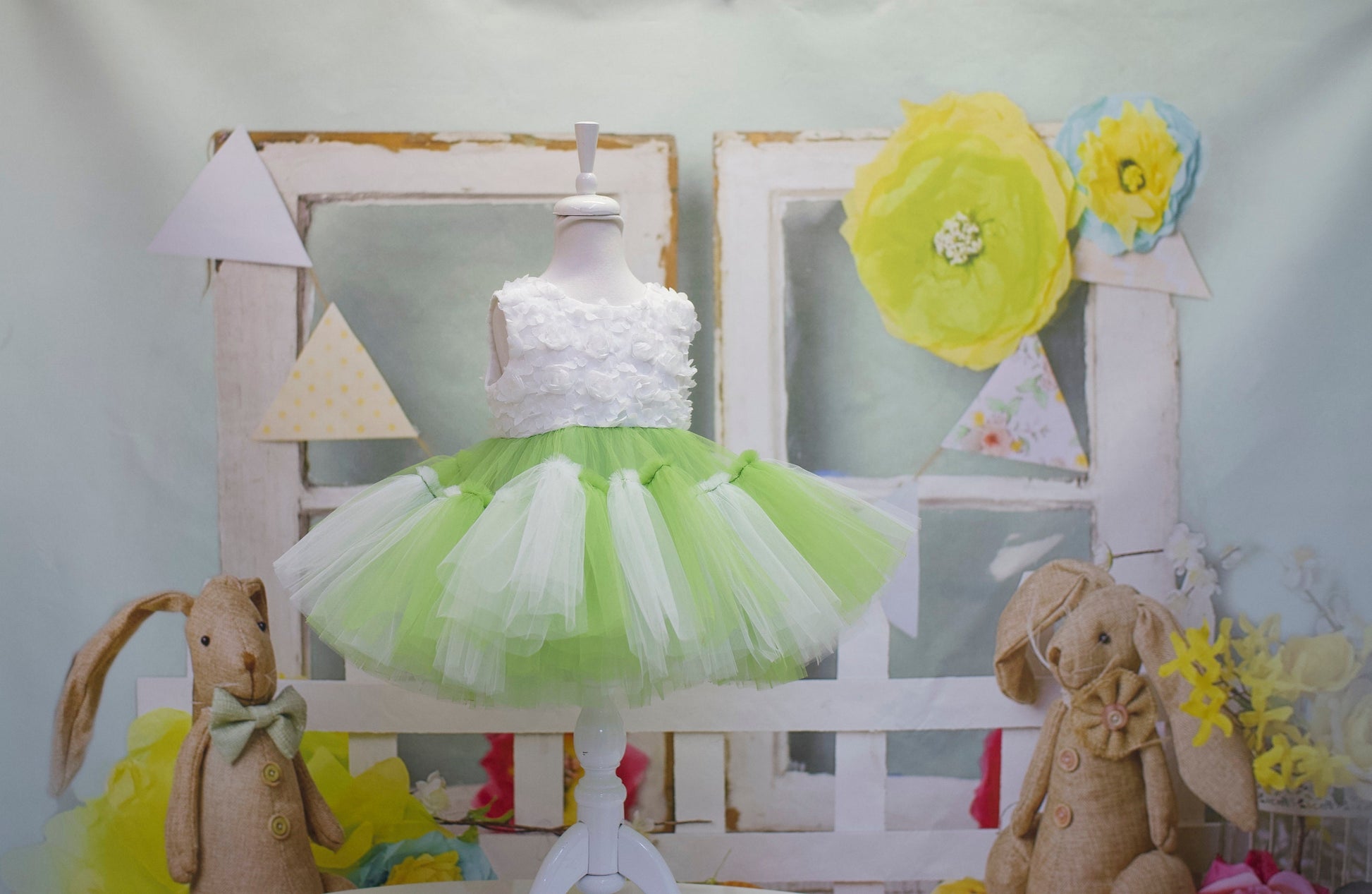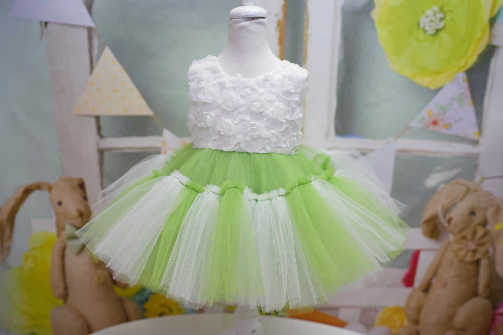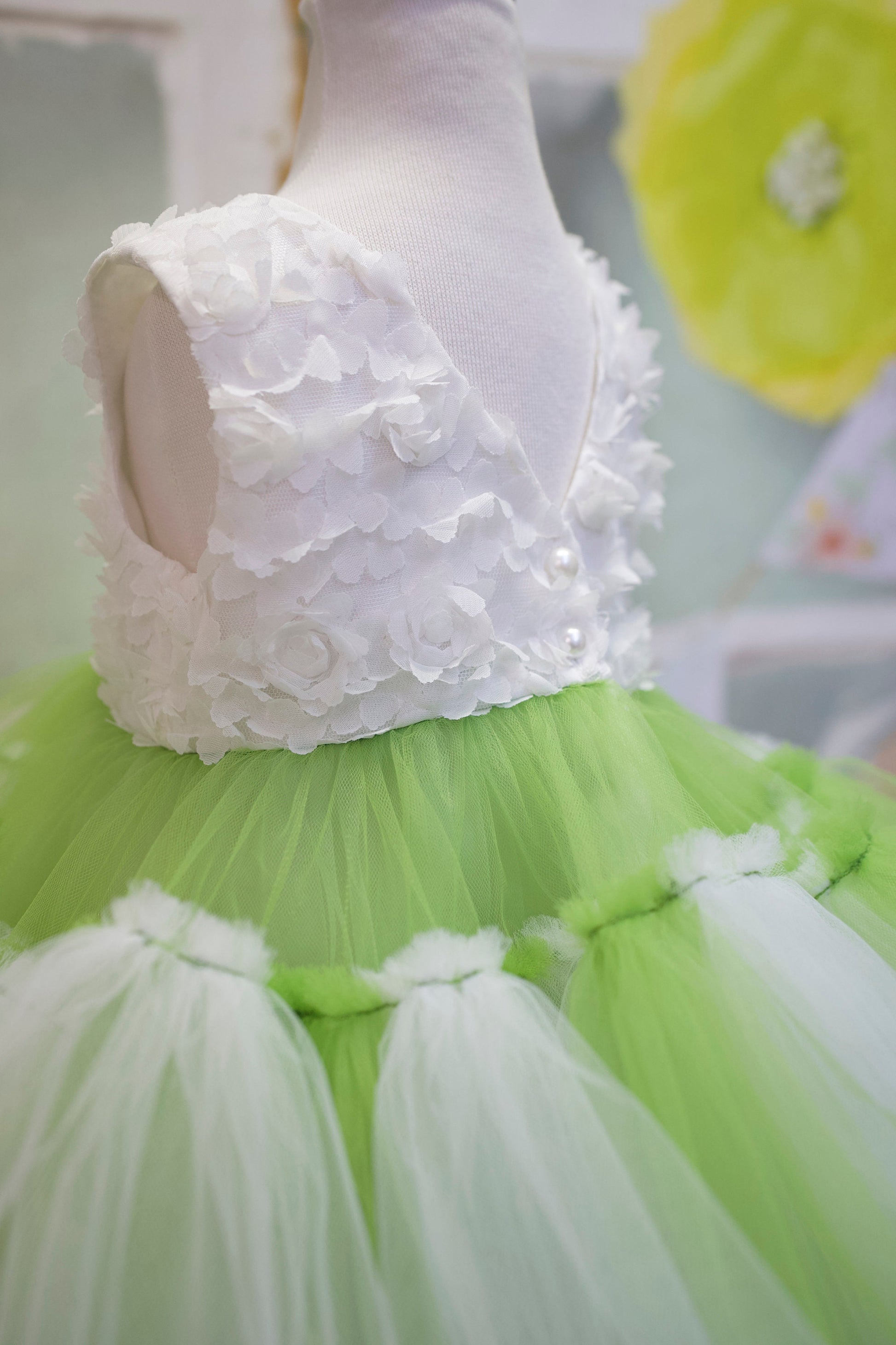 Princess Green and White Tulle Dress: Baby Wedding, First Birthday
