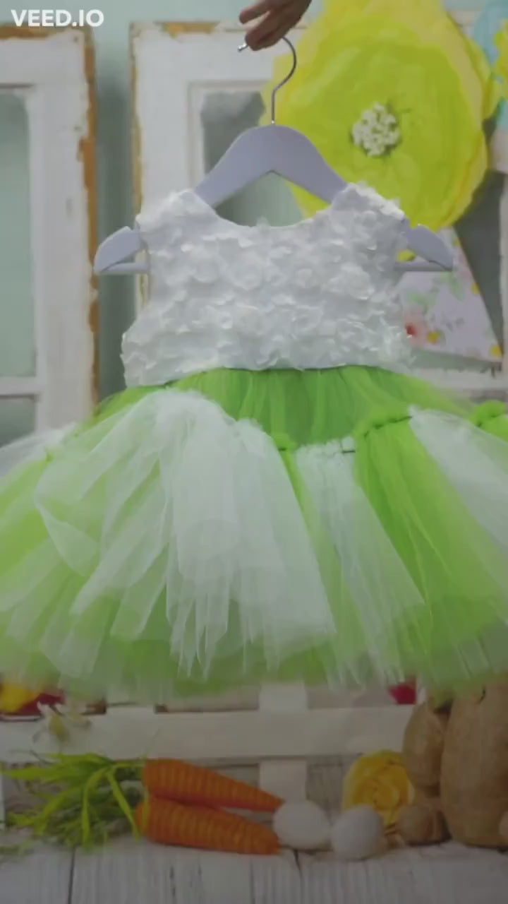 Make her special day truly magical with this enchanting green and white tulle dress! Designed for little princesses, this dress features soft layers of airy tulle in a dreamy green and crisp white palette, creating a fairytale look that’s picture-perfect for baby weddings, first birthdays, and milestone celebrations.