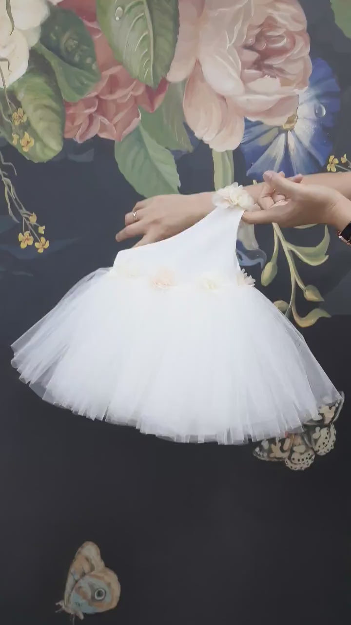 One Shoulder Flower Girl Tutu Dress – Knee Length Wedding & Communion Gown