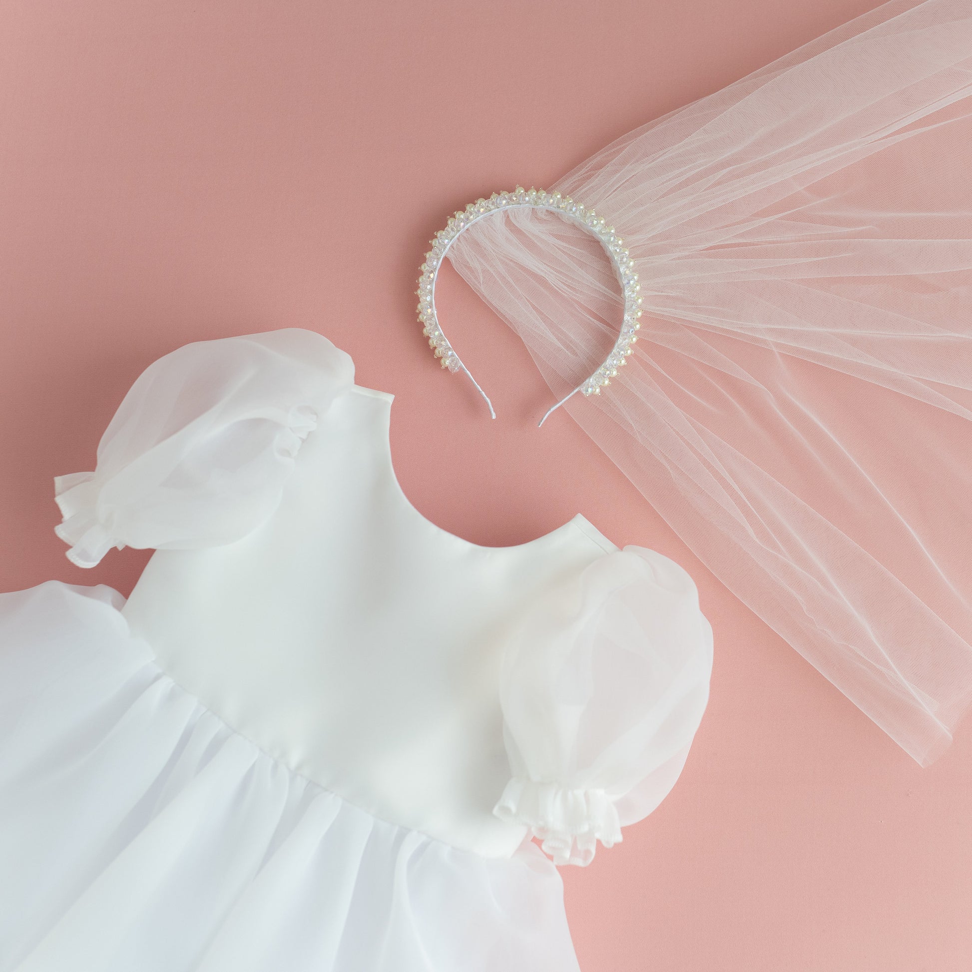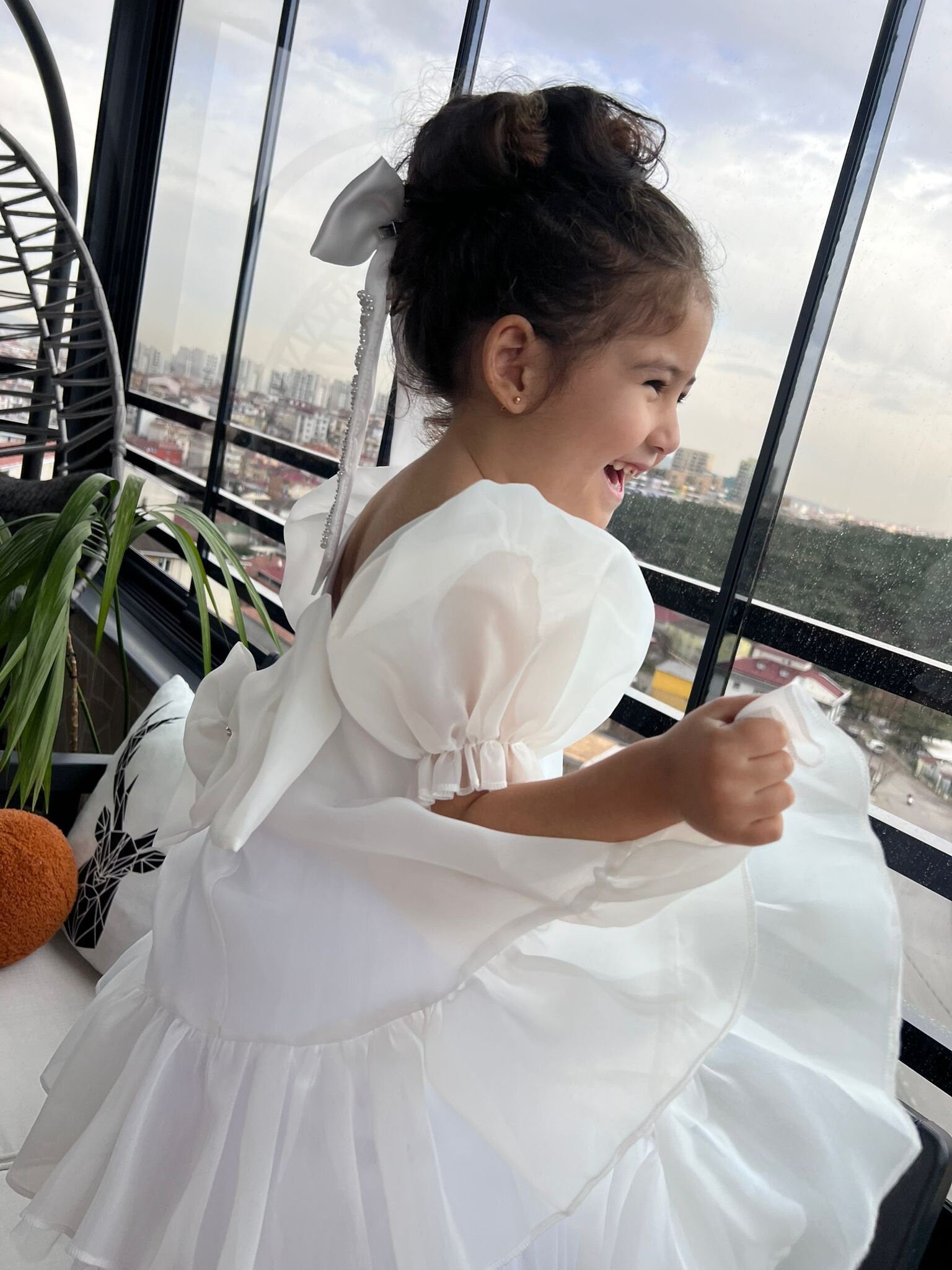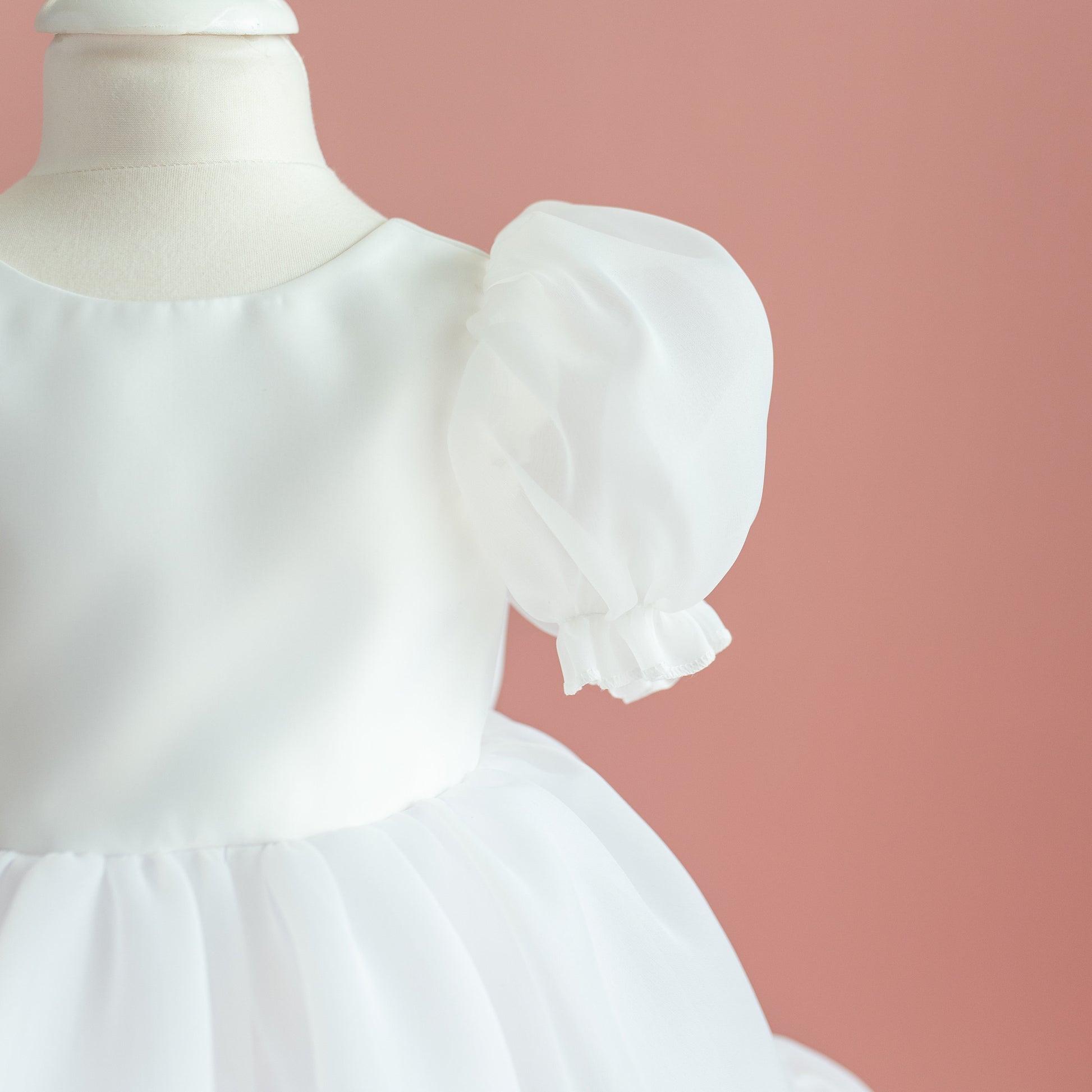 White Organza Flower Girl Dress with Bow – First Communion & Party Dress
